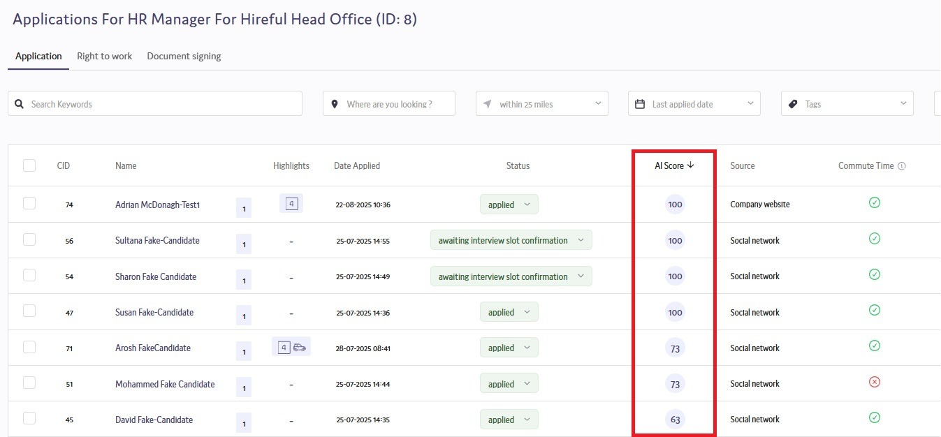 hireful's AI shortlisting feature was specifically designed to address this challenge. When you're receiving high volumes of Indeed Easy Apply candidates, having the ATS score applicants means you can identify your best candidates immediately rather than working through applications in date order. This lets you reach out to top talent before your competitors even finish reading their CVs.